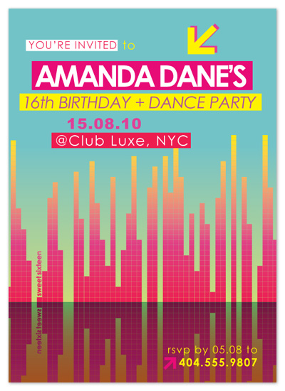 The first thing that came to my mind is that horrible show on MTV "My Super Sweet Sixteen." If I had been a spoiled brat I think I would have wanted a dance club themed party, complete with glow sticks, cage dancers and lots of house music. Well, not really, but I do love a good beat and practicing my freestyle dance moves in a dimly lit nightclub.